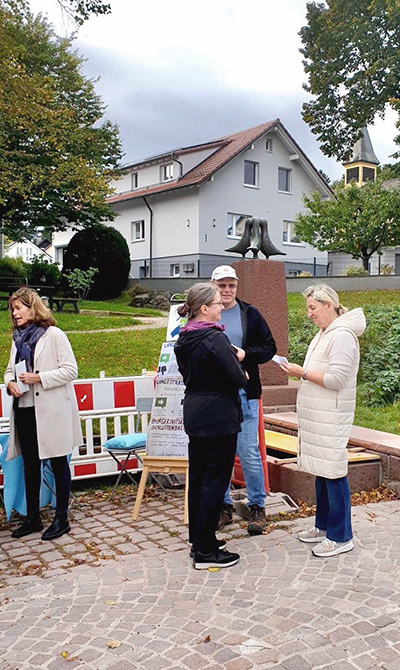 Wir konnten anregende und informative Gespräche mit interessierten Bürgern aus Schluttenbach führen, die sich auch vom Regen nicht abhalten ließen, unseren Stand aufzusuchen.